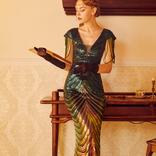 Drawing from the iconic style of the blasting 20s, this Gatsby dress for women captures the essence of classic elegance. It stands as the peak of Gatsby-inspired fashion for modern women.